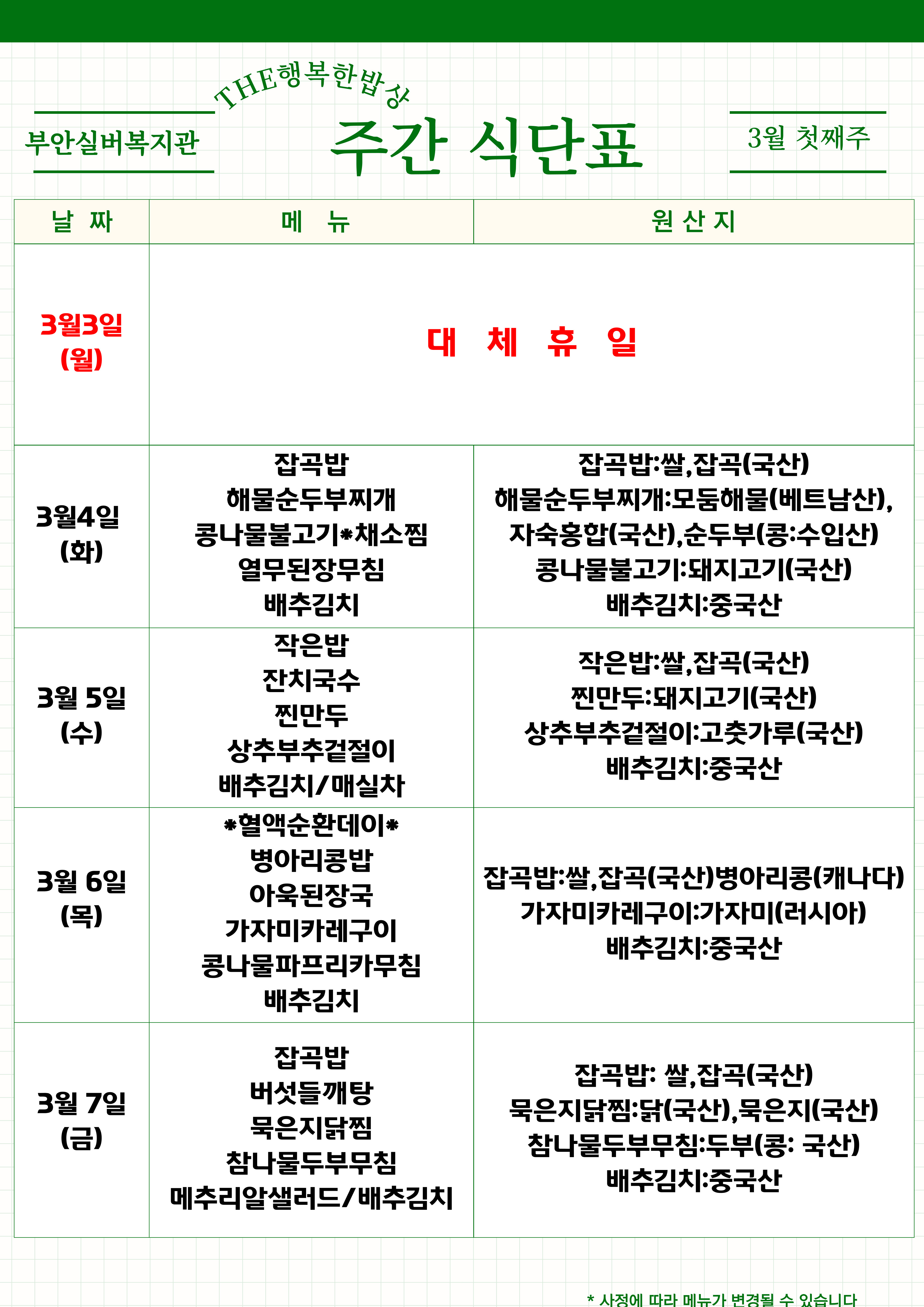 | 복지관 식단표 - 3월 2주 (0) | 2025.03.10 |