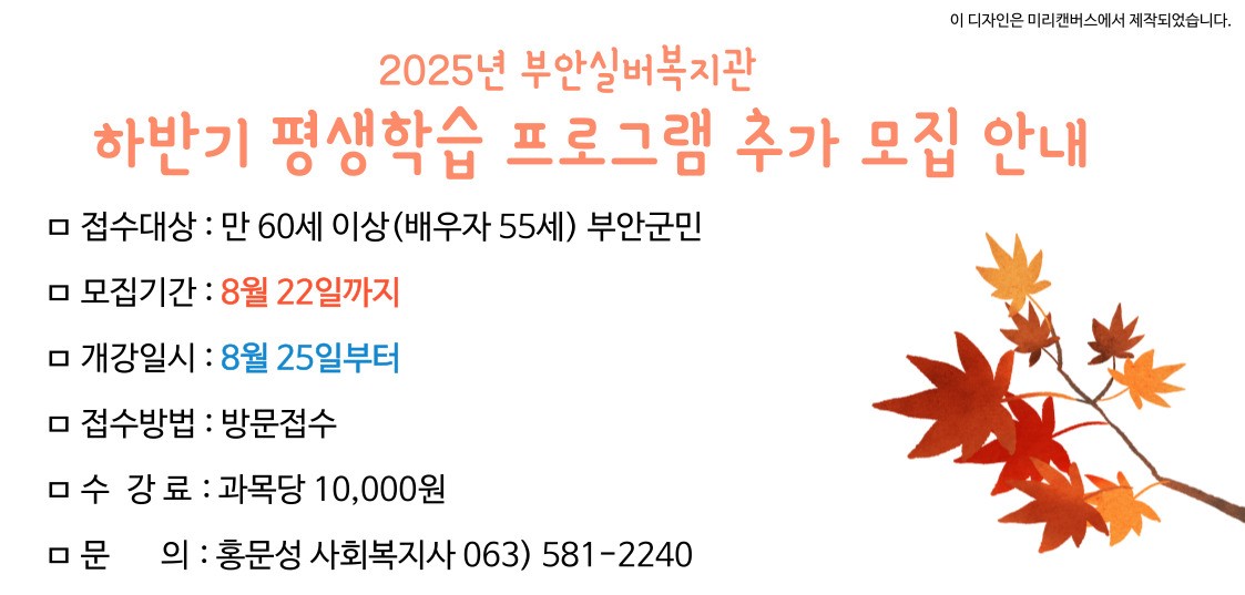 | 2025년 평생학습 하반기 개강 안내 (0) | 2025.08.11 |