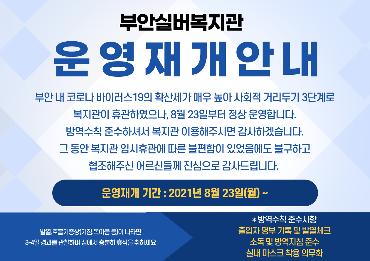 | 복지관 휴관 안내 (0) | 2021.08.06 |