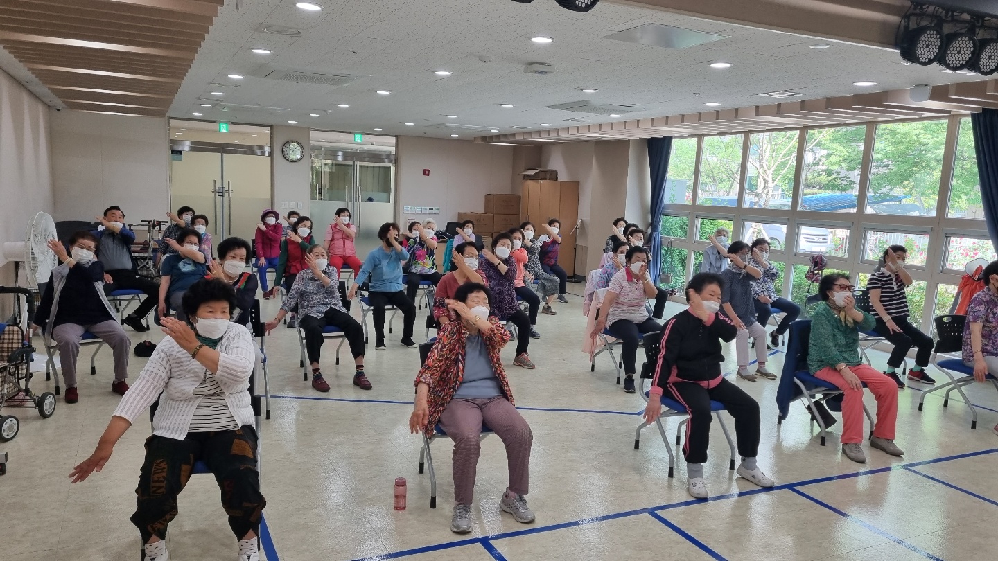 부안실버복지관이 2020년 5월 개관하고 어르신들과 처음으로 함께 했던 프로그램인 건강체조가 어느덧 2년이 되었습니다. 건강체조는 어르신들의 체력과 건강상황에 맞게 의자에 앉아서 몸을 풀기도 하고, 신나는 노래에 맞춰 스트레칭을 하면서 어르신들의 건강과 웃음을 함께 챙겨오고 있습니다.