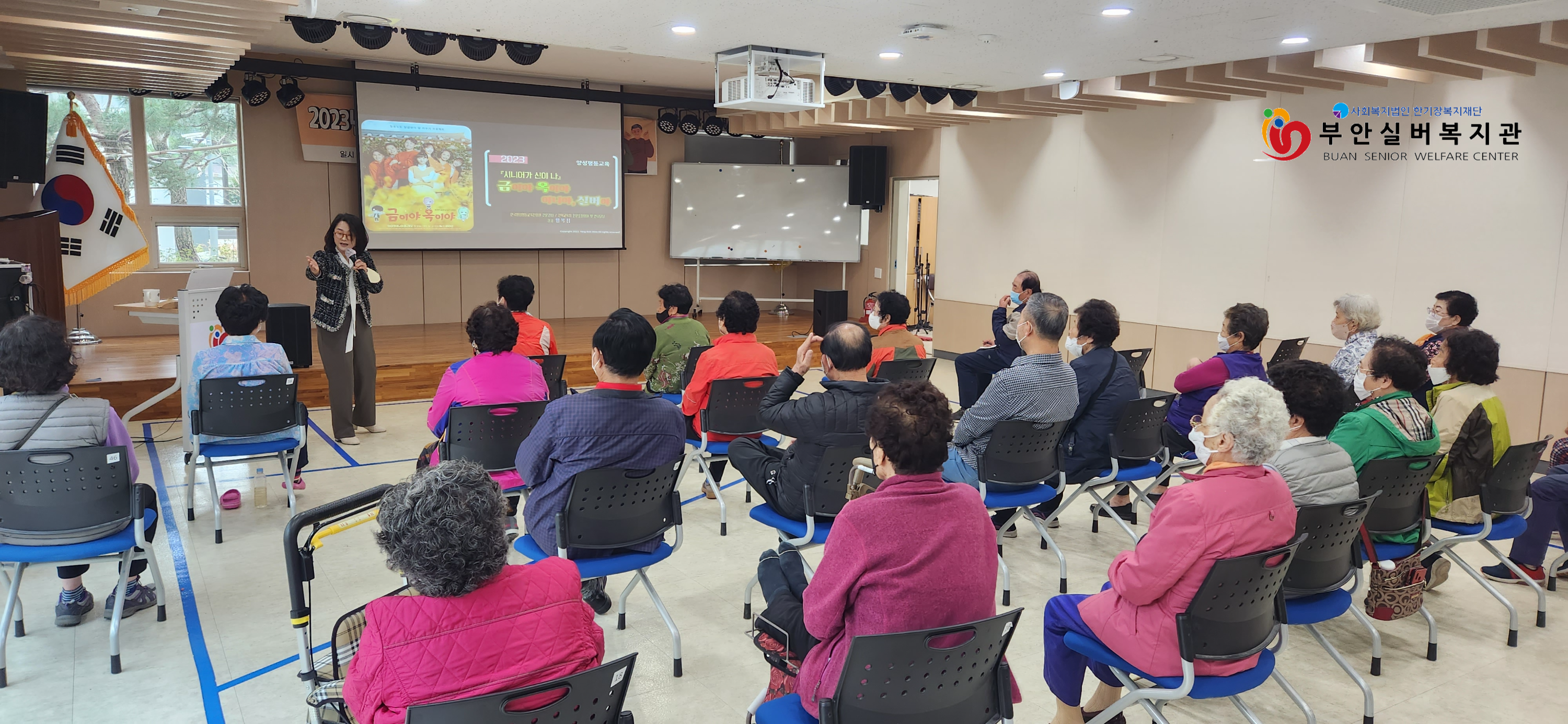 부안실버복지관에서는 복지관 이용 어르신들의 권리증진을 위해 (재)전북여성교육문화센터와 연계하여 '어르신 양성평등' 교육을 진행했습니다.