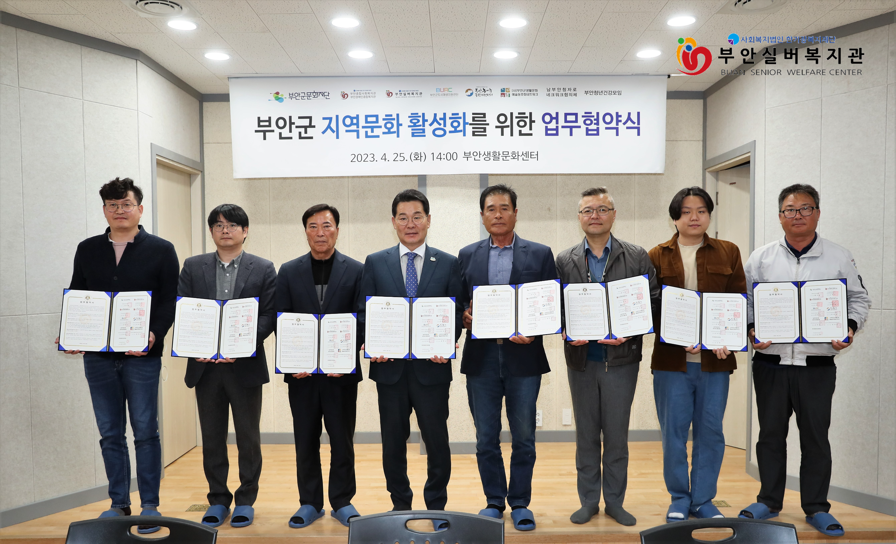 부안군 지역문화활성화를 위해 (재)부안군문화재단(이사장:권익현) 외 7개 기관과 업무협약을 진행하였습니다.